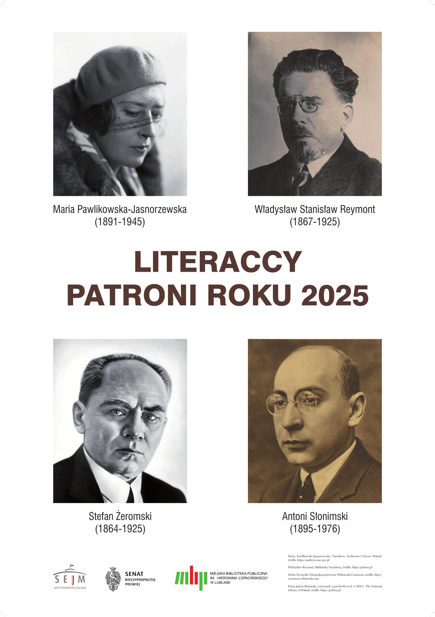 Wystawa okolicznościowa prezentuje biogramy oraz wybraną ikonografię wybitnych postaci polskiej literatury: Antoniego Słonimskiego, Władysława Reymonta, Stefana Żeromskiego, Marii Pawlikowskiej-Jasnorzewskiej.