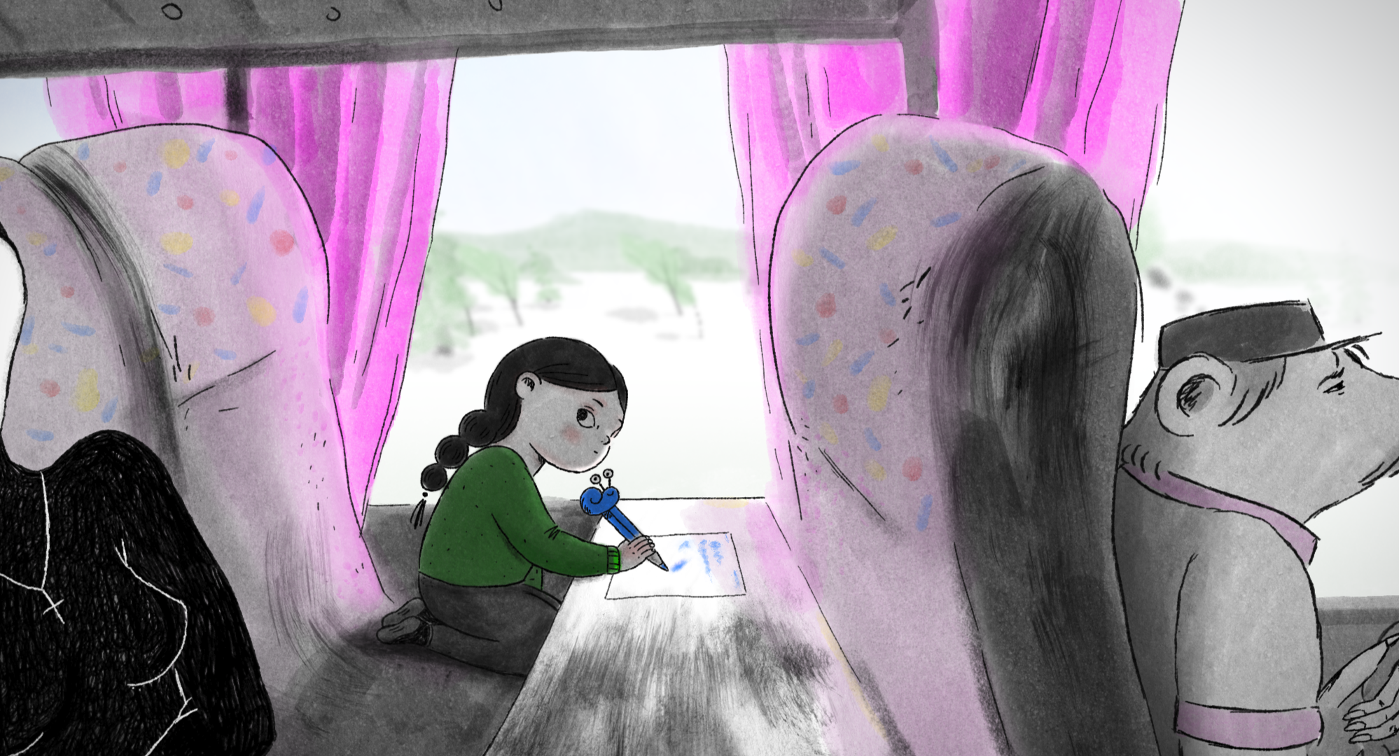 AUTOKAR (Belgia, Francja, Polska 2025, 17:27), Sylwia Szkiłądź | OZÙ Productions – Jérémie Mazurek, Christophe Beaujean, Vivi Film – Viviane Vanfleteren, Amopix W latach 90. ośmioletnia Agata opuszcza Polskę i wyjeżdża do Belgii. Zaniepokojona podróżą, dziewczynka pisze list do ojca, który pozostał w kraju, lecz jej ołówek wypada z rąk i ginie gdzieś w autobusie. Zmuszona do przełamania swojej nieśmiałości, Agata czołga się między siedzeniami w poszukiwaniu zguby, zanurzając się w fantastyczny świat zamieszkany przez osobliwych, półludzkich, półzwierzęcych pasażerów. Oczami ośmiolatki rzeczywistość migracji przemienia się w inicjacyjne doświadczenie.